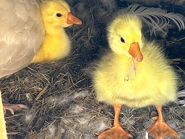 Oscar and Ella are parents to five adorable chicks! Oscar who is usually running around being the loudest on the Farm, is not leaving the nest and is perfectly quiet. There are five total, some are brown/white and the others yellow